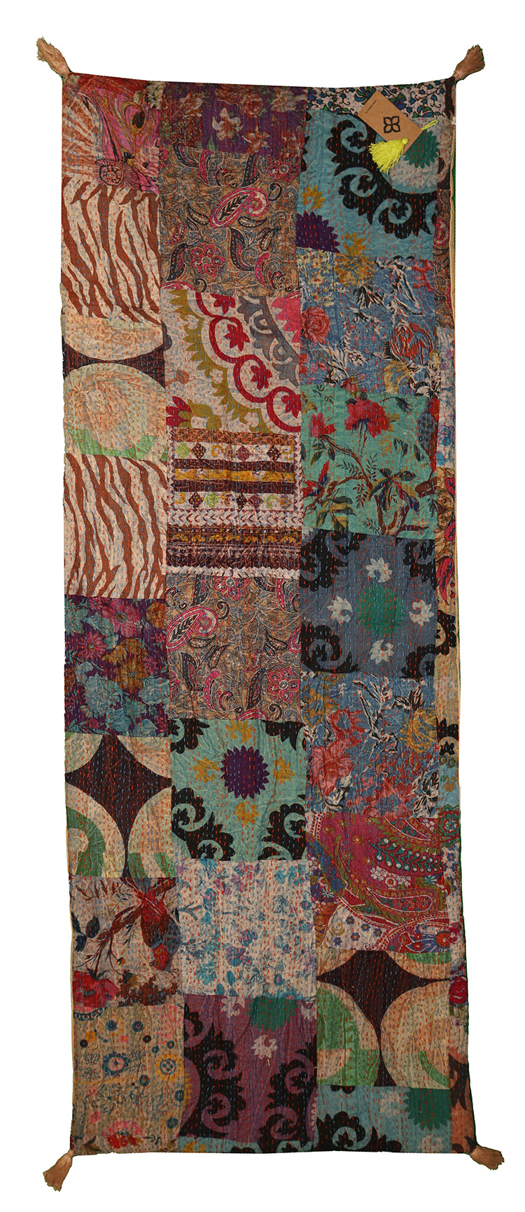 Our patchwork cushions and mattresses are sewn from surplus cotton fabrics and then hand embroidered with kantha.