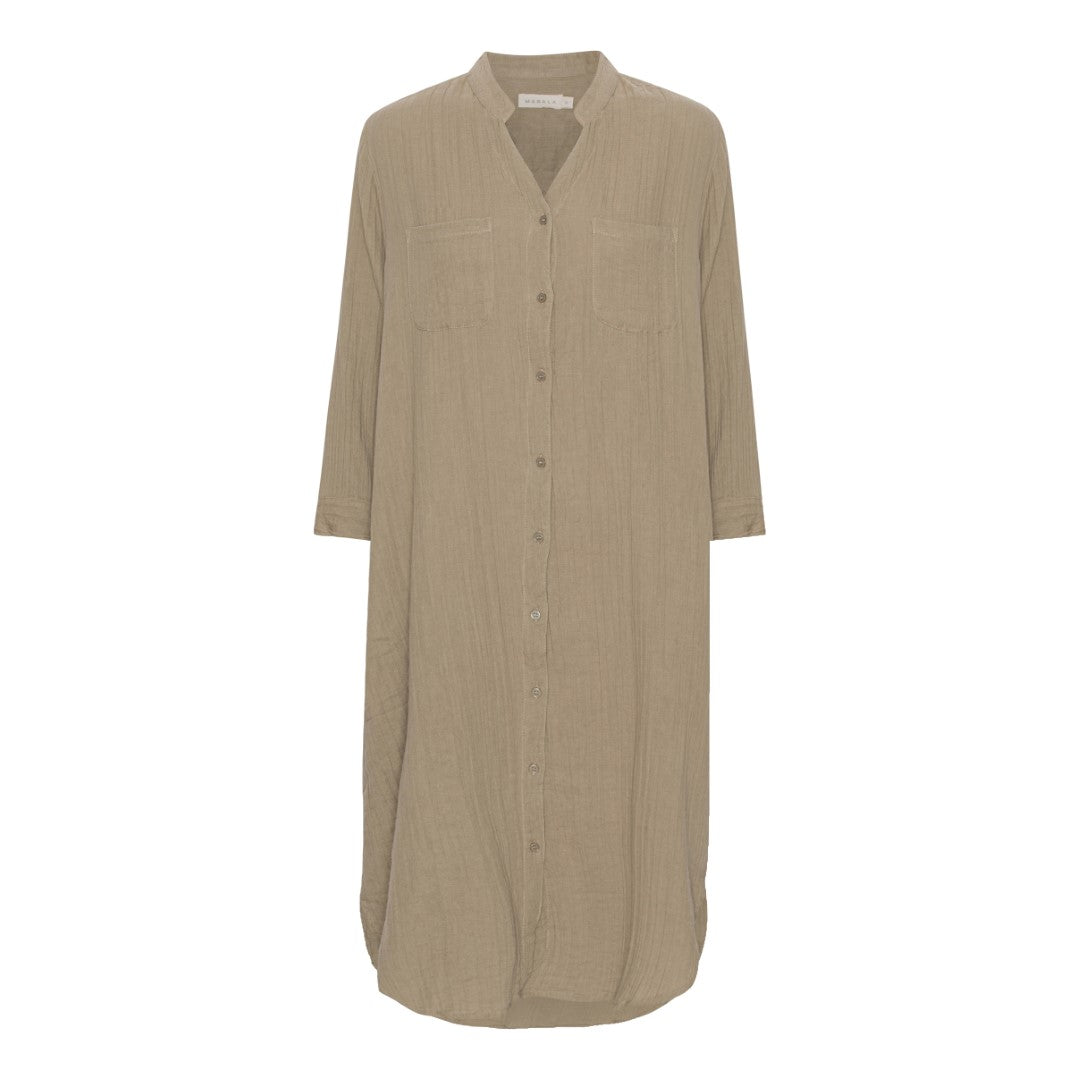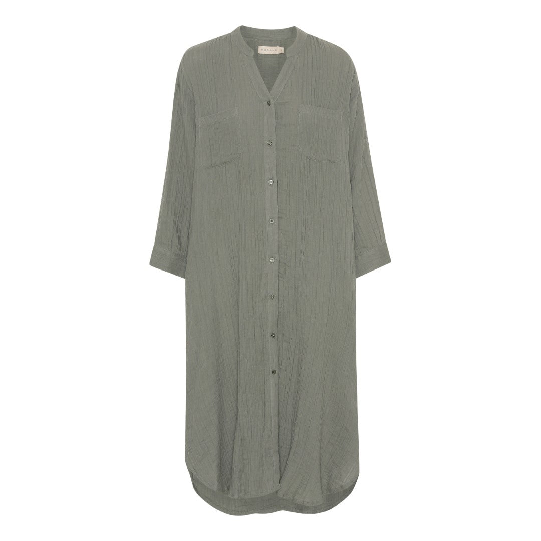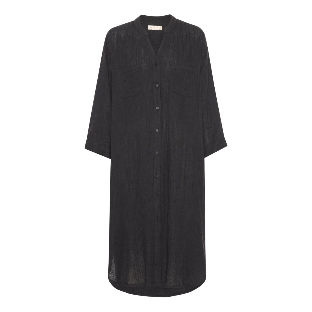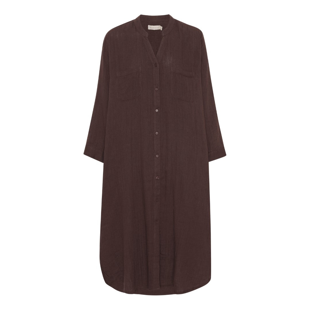 Lang gennemknappet skjortekjole med brystlommer og kinakrave.