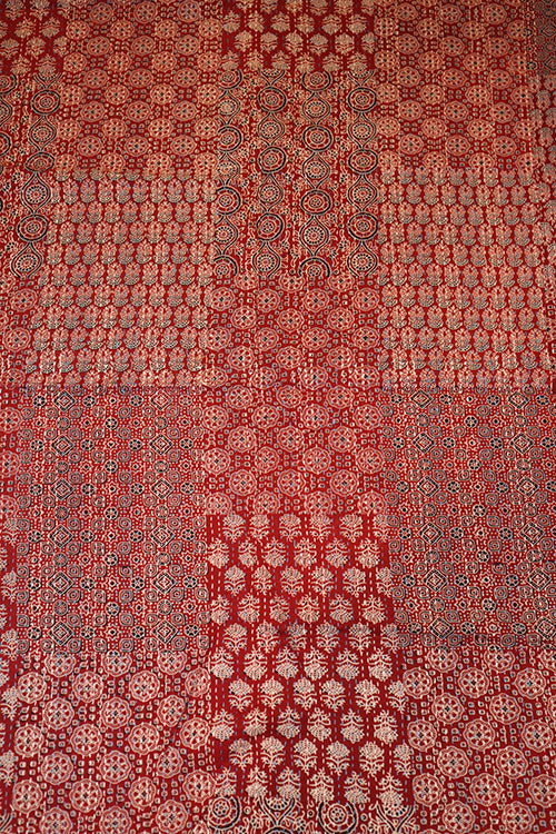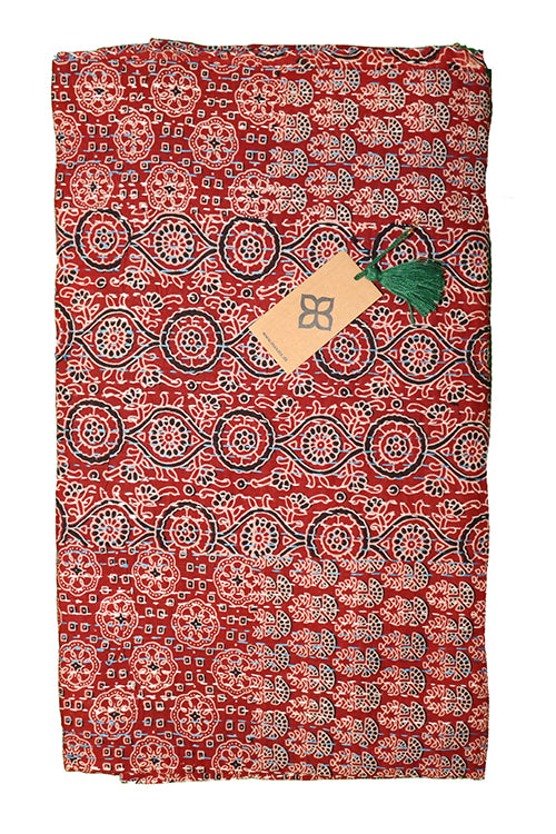 Dette fine tæpper er syet i hånden , materialerne er nye , så ikke vintage som vor sari tæpper, kantha teknikken er dog den samme og tæppet er forskellig på begge sider, azrak blokprint mønster på den ene side og ensartet på den anden.