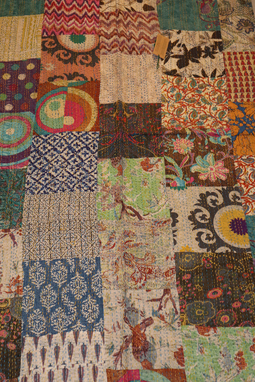 Kantha stonewash sengetæppe 270*220 cm, patchwork