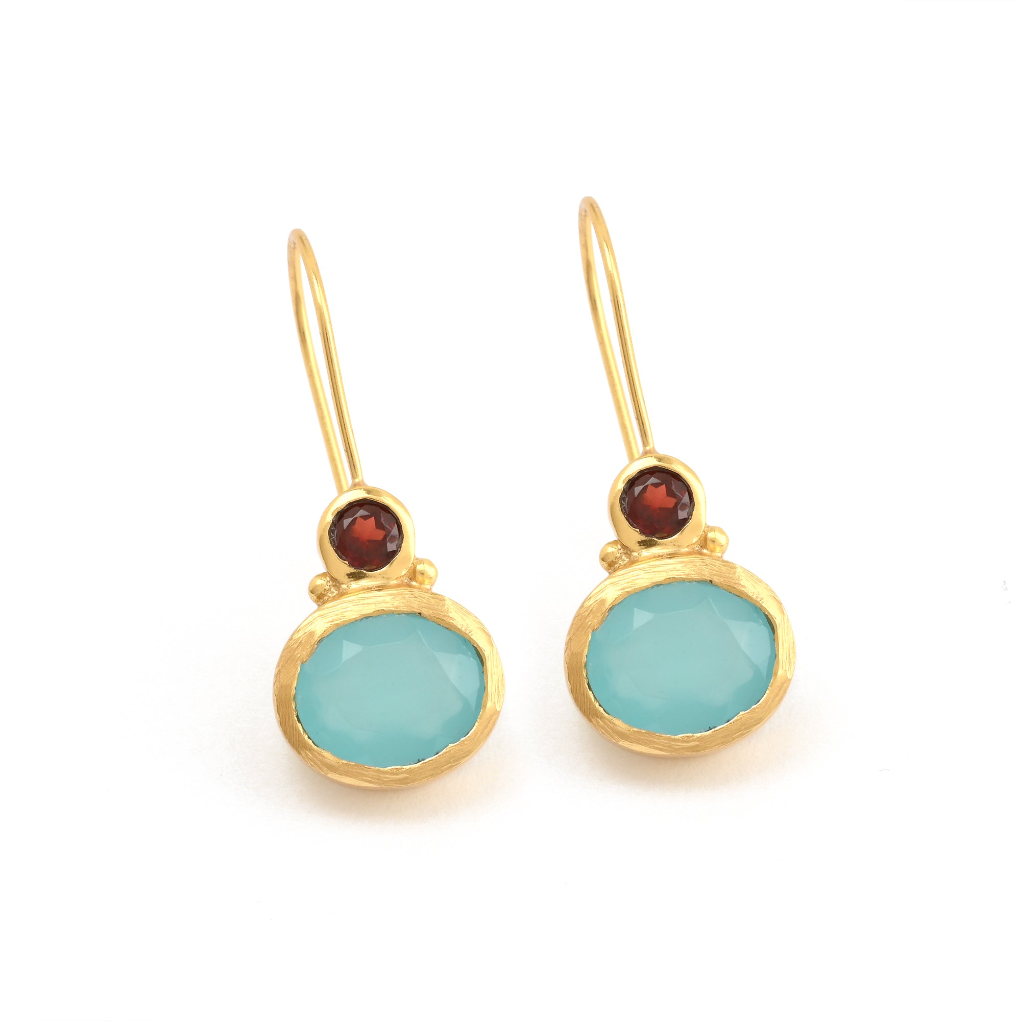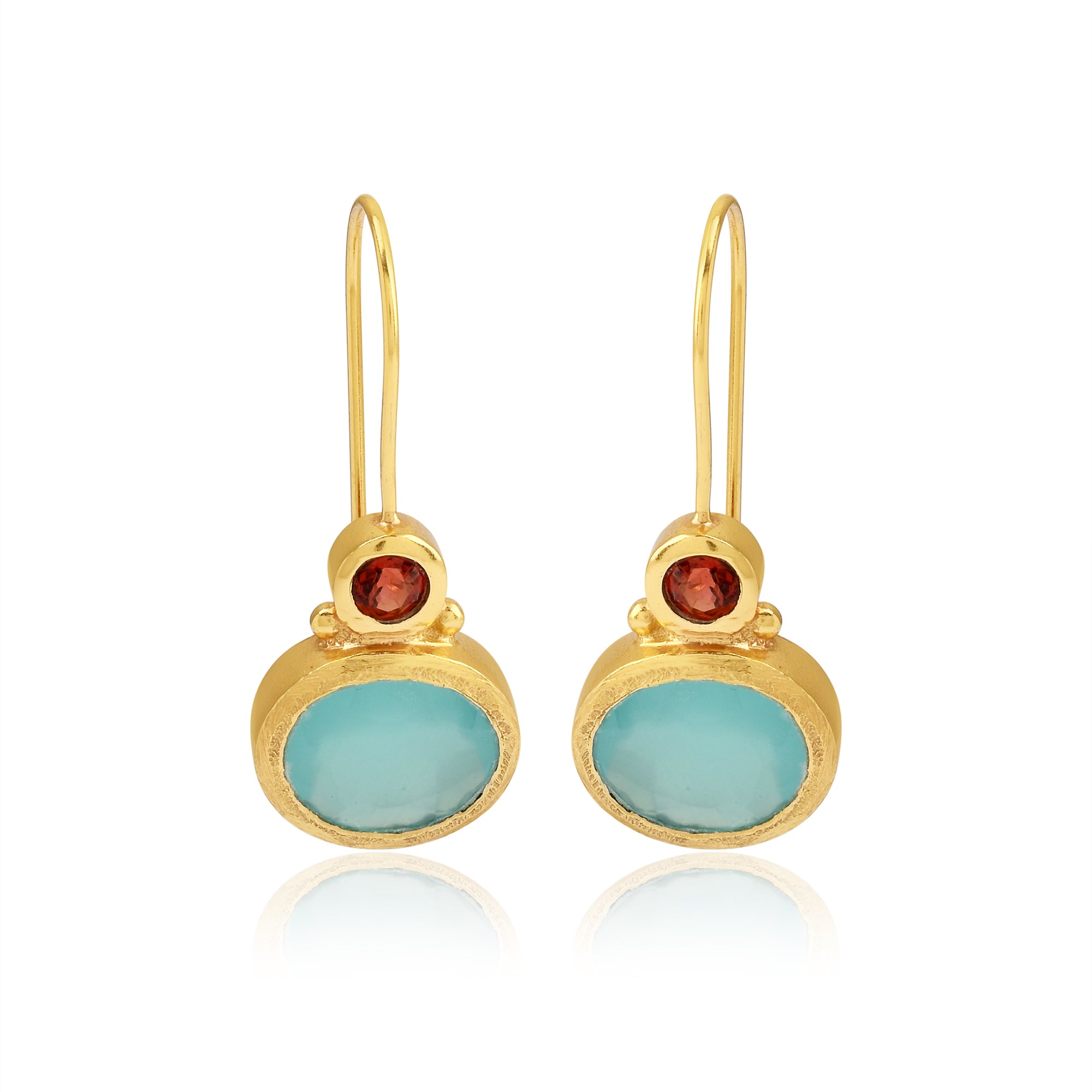 Ørering af 22 karat guldbelagt messinglegering med vedhæng af aqua chalcedony og granat