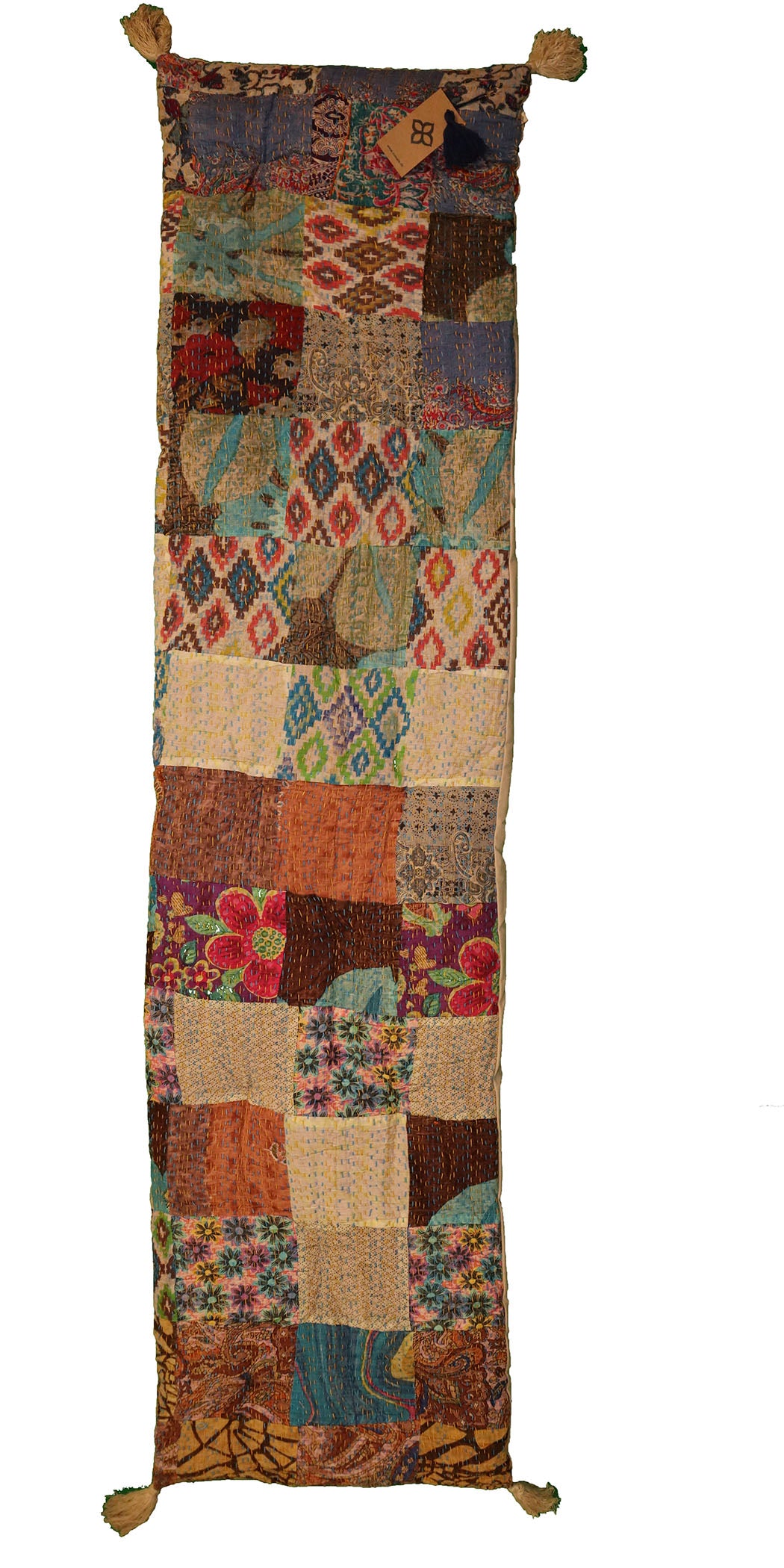 Vores patchwork hynder og madrasser er syet af overskuds bomuldsstoffer og derefter håndbroderet med kantha.