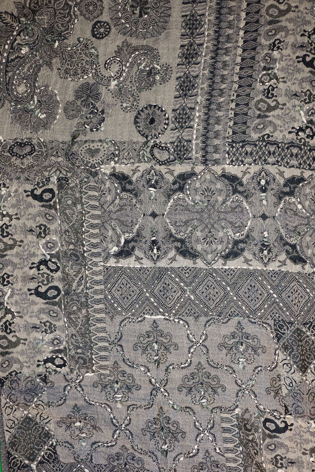 Elegant og farverigt uld tørklæde med broderinger, tørklædet er vævet af 100 % let kogt uld.