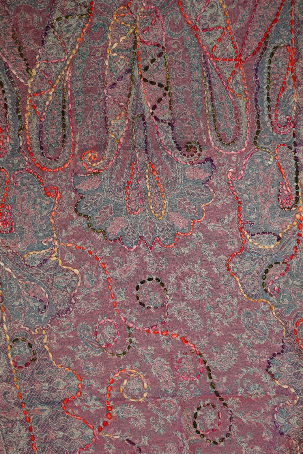 Elegant og farverigt uld tørklæde med broderinger, tørklædet er vævet af 100 % let kogt uld.